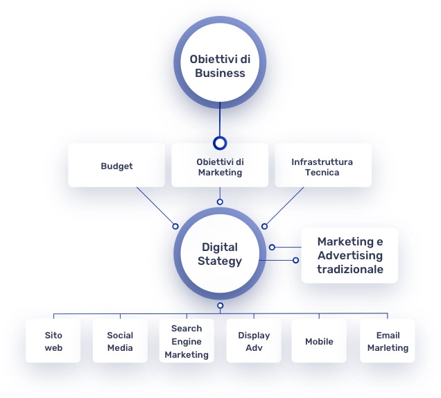 A digital strategy is the process by which vision, objectives, tactics, channels and KPI are defined to maximize the economic benefits of digital technologies.