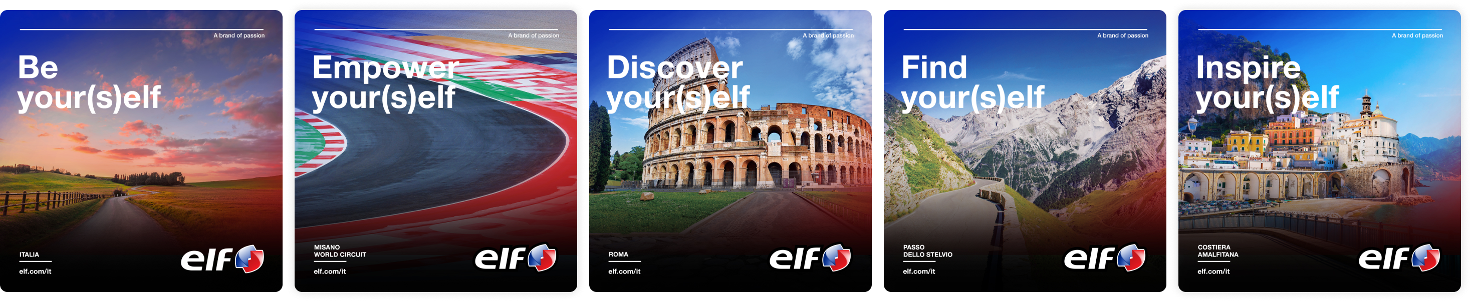 Asset principale della campagna Be Your(s)elf è il video che, con tono caldo ed emozionale e inquadrature in soggettiva a volo d'uccello di alcune delle location più iconiche per gli appassionati di viaggi in moto e competizioni su due ruote, ha riacceso il racconto del mondo ELF e dei suoi valori verso i 2 target generazionali individuati per la campagna.